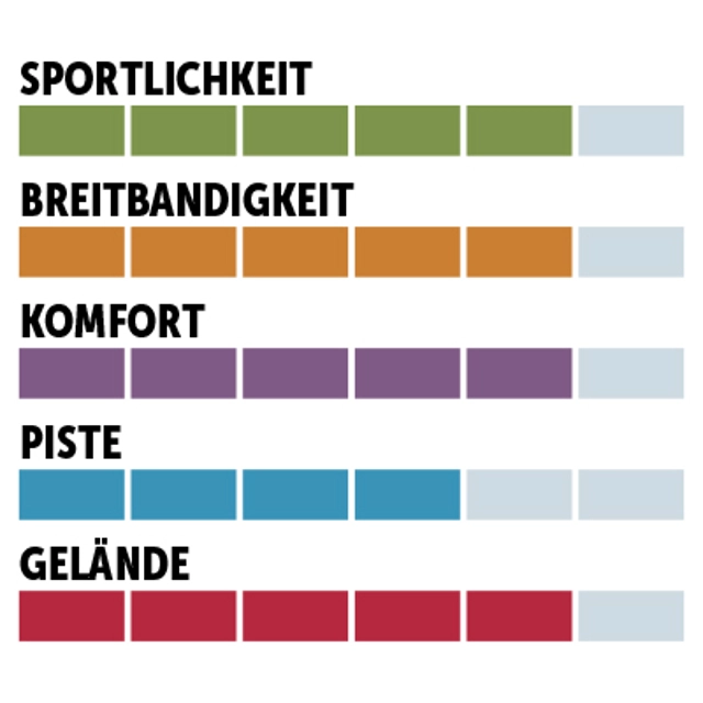 Ein sehr sportlicher Allmountain-Vertreter, der mit seiner 85-mm-Mitte und sportlichen Abstimmung eher für den Pisteneinsatz ausgelegt ist – und somit auch gut in der Allpiste-Kategorie seinen Mann gestanden hätte. Der laufruhig-stabile „Redster Q9.8“ liebt Speed, für das Gelände geht ihm etwas das Spielerische ab. „Ein tolles ‚Sport-SUV‘ für Pistenfahrer, die einen dynamische Ski für die gesamte Saison suchen“, analysiert einer unserer Experten. „Ein Allmountain-Vertreter mit viel Potenzial für lange Highspeed-Turns.“
