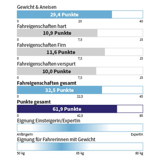 Long Turns in tiefem Powder wird man mit den Ski nicht machen können und auch auf harter Piste werden sie leicht unruhig. Aber dafür sind sie ja auch nicht gemacht, obwohl sich in den letzten Jahren gerade bei der Abfahrtsperformance einiges getan hat.